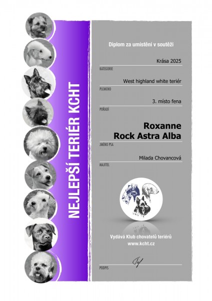 V soutěži Nejlepší teriér KCHT - plemeno WHWT - kategorie krása 2025 - feny